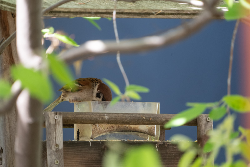 昨年に引き続きバードフィーダーにスズメがやってきました!
